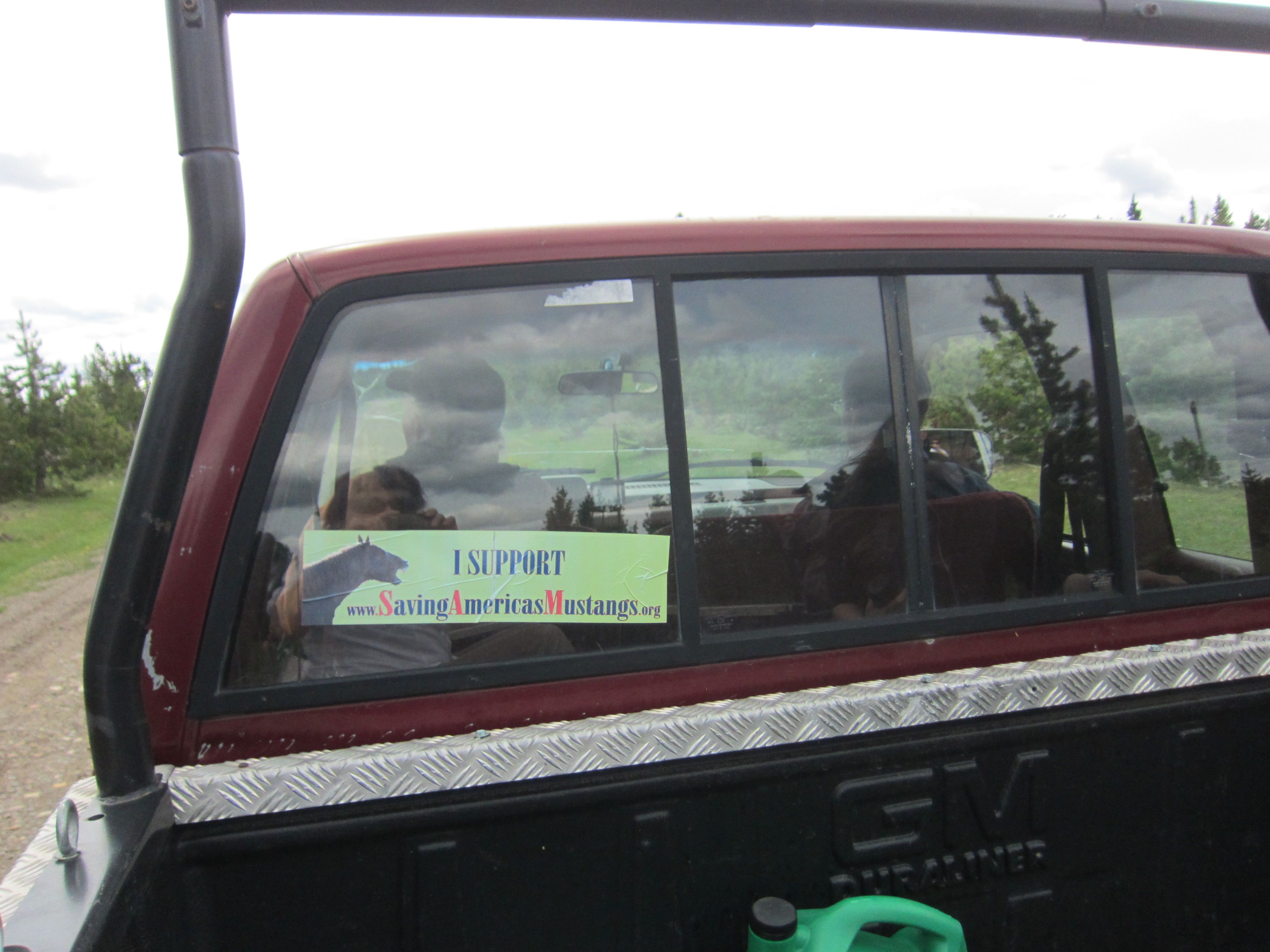 - Dana and R. enjoying the view from the back of the truck.