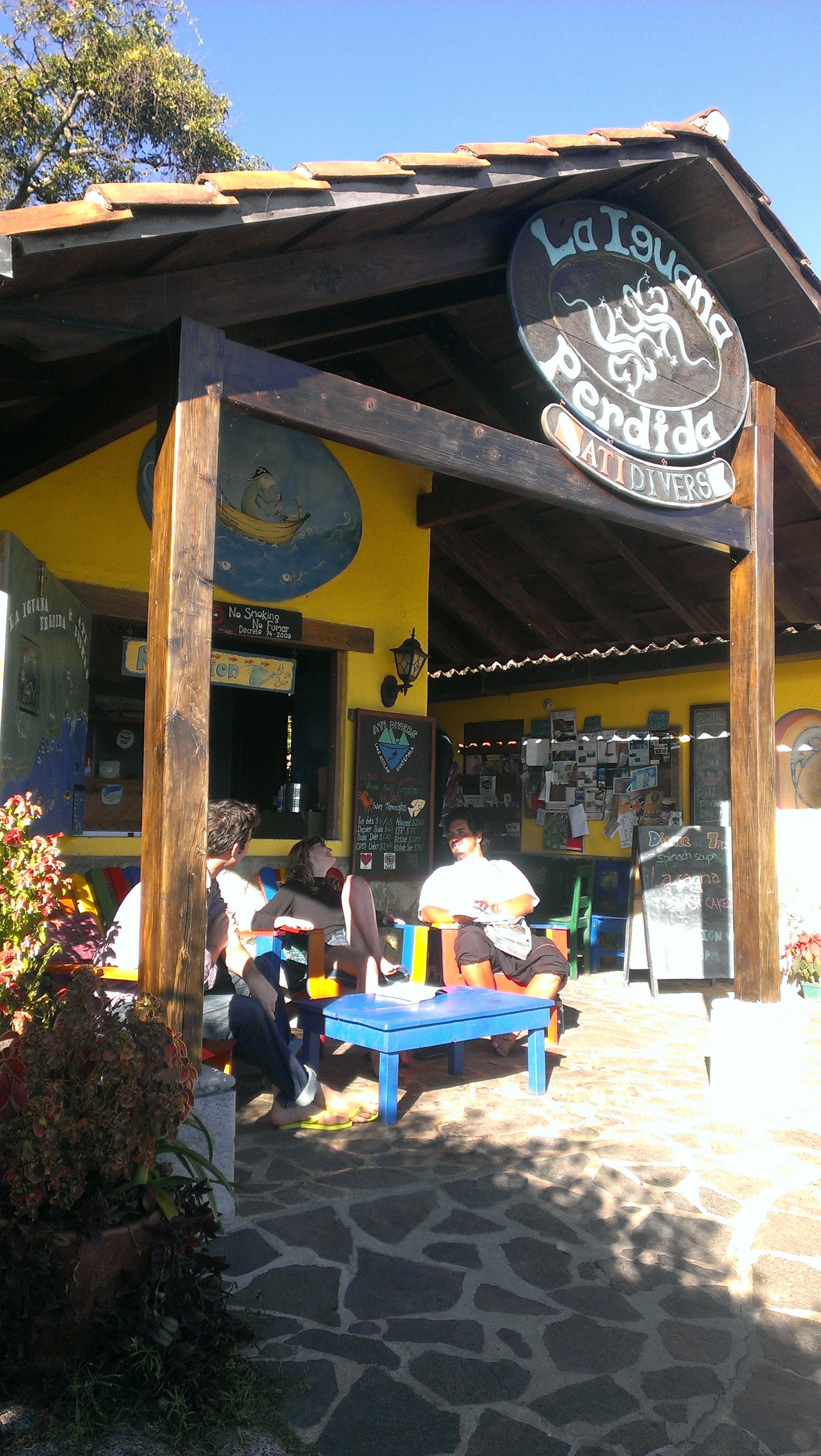 What I had instead was a large lovely room on the second floor with a balcony offering a stunning view of the volcanos and the lake. Good so far, right? Yeah, well this picture perfect space was right behind the kitchen and bar/restaurant and up from the public docks. The kitchen started chopping, rattling, chattering and crashing from about 7 am till 8 pm.