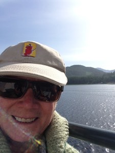 The mountains aren’t dazzling like the mainland ones, here their edges are soft and rounded. Most are covered by evergreen trees except where the lumber companies cleared swaths away. The water is black, the sky is bright blue and the air is just cool enough I don’t notice the uv rays reflected off the water burning my nose and cheeks.