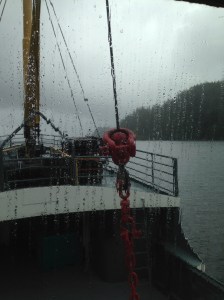 As I waited for the Francis Barclay the rain picked up steam and by the time we left the shelter of Bamfield it was pounding down. What a difference a couple day makes! The 10 passengers on board mostly huddled inside, napping and reading. In a couple of hours we met up with another boat and 4 divers from one of the resorts boarded. I hung with Bob, an ambassador for the City of Port Albernie is charged with chatting with tourists and being available as a local resource for them. It is a great idea and he was perfect for the job being an affable chap.