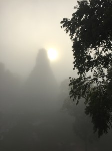 His trick to avoid paying the extra entry fee in the morning was this: at this time of year the place is coated in a thick mist in the early morning so the people who go in early to hike to the tallest (and furtherest) temple, #4  will see the sun come up but none of Tikal will be visible. Since we only hiked to the main plaza and climbed up the 2nd tallest building, temple 2, we got to see the sun rise through the mist behind the Jaguar Temple. It was glorious! Like Samuel said, you can see the sun come up anywhere in the world but only here can you see Tikal temples at dawn.