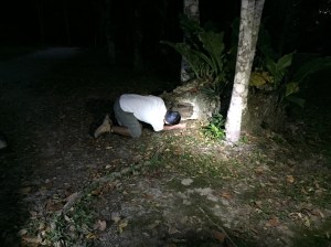 The show over for another day, we tramp down the stairs into real darkness. It is no wonder the park insists no tourists after dark without a guide… there’s no way most of us would have found our way out before the insects inhaled all our blood! Forget about the jaguars, I fear the mighty mosquito!